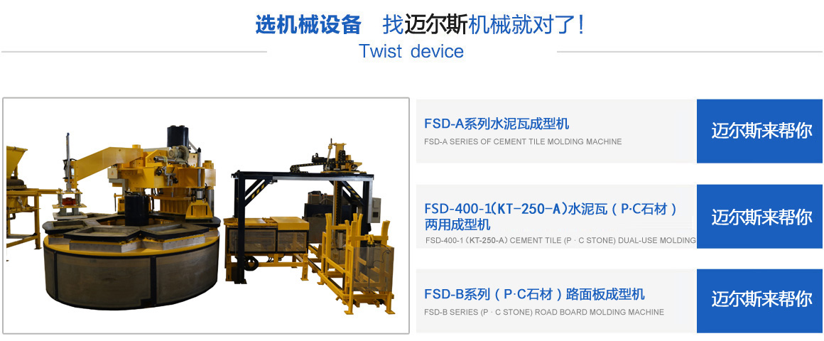 常熟市邁爾斯機械有限公司是一家集研發(fā)、生產(chǎn)、銷售于一體的建材機械高科技企業(yè),其前身為2011年注冊創(chuàng)辦的“常熟市虞山鎮(zhèn)豐順達機械配件廠”,經(jīng)過多年的努力,于2017年注冊成立“常熟市邁爾斯機械有限公司”,專業(yè)生產(chǎn)模壓水泥彩瓦機、P.C石材機、轉(zhuǎn)盤式成型機、彩色路面磚機等綠色建材設(shè)備。公司以市場為龍頭,以技術(shù)為導(dǎo)向,開發(fā)了系列化、標(biāo)準化的適銷對路的機械產(chǎn)品,并且注冊了多項國家專利技術(shù),銷售范圍覆蓋全國,并且出口越南、老撾等東南亞和其它國家。